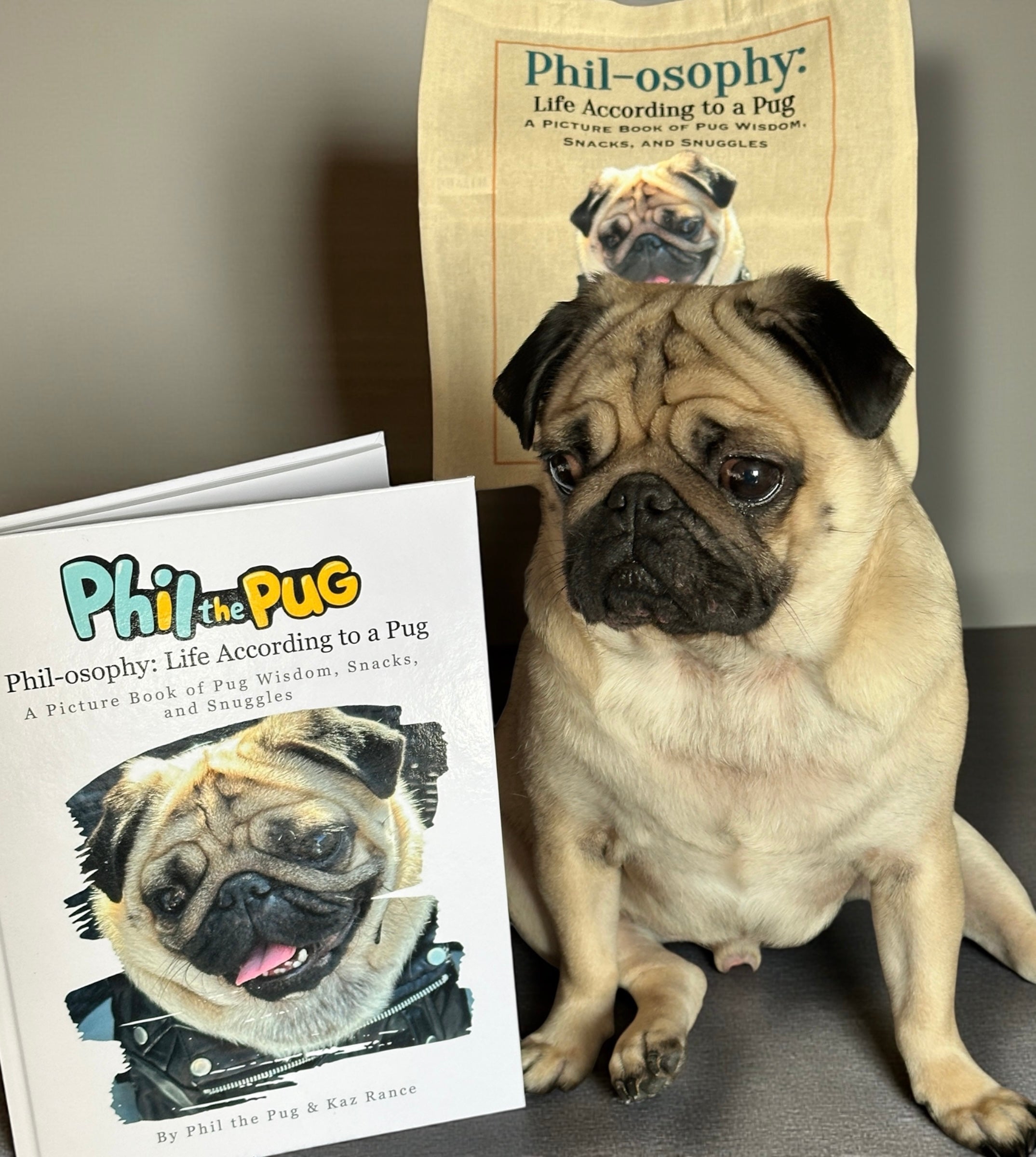 📖 Phil-osophy: Life According to a Pug A picture book of pug wisdom, snacks, and snuggles. It’s my guide to living gently, loving boldly, and always knowing where the nearest biscuit is.
